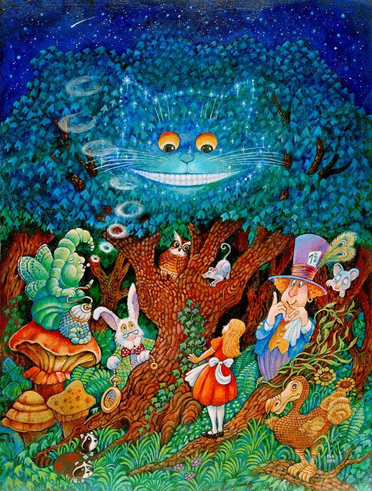 Alice And The Cheshire Cat White Modern Wood Framed Art Print with Double Matting by Bell, Bill