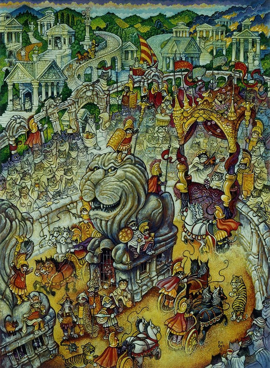 Roman Cats White Modern Wood Framed Art Print with Double Matting by Bell, Bill