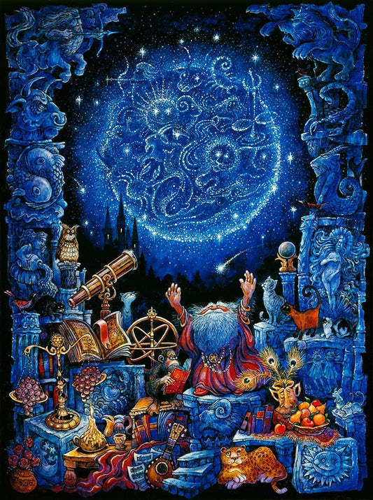 Astrologer 2 White Modern Wood Framed Art Print with Double Matting by Bell, Bill