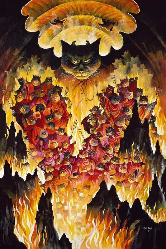 Devil Cats White Modern Wood Framed Art Print with Double Matting by Bell, Bill