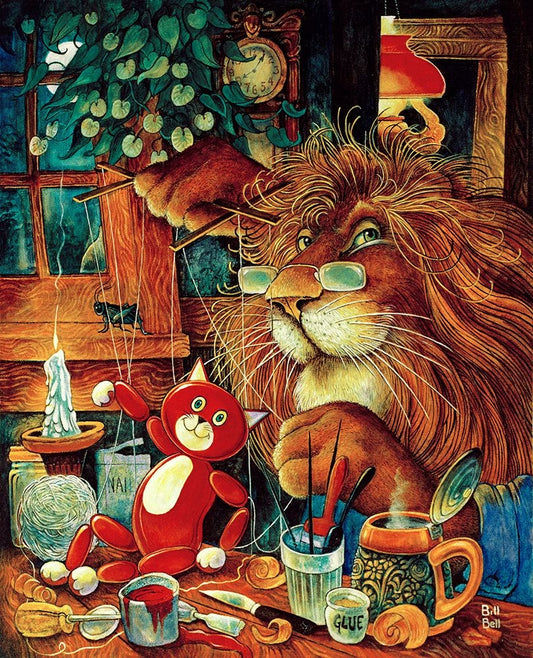 Pinnochio Cat White Modern Wood Framed Art Print with Double Matting by Bell, Bill