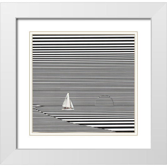 Sunset And Sailing White Modern Wood Framed Art Print with Double Matting by Wonder, Howie