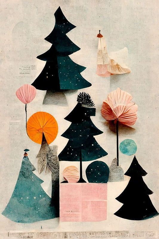 Cute Pine Tree Composition Black Ornate Wood Framed Art Print with Double Matting by Treechild