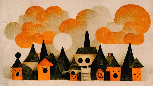 Spooky Wooky Village Black Ornate Wood Framed Art Print with Double Matting by Treechild