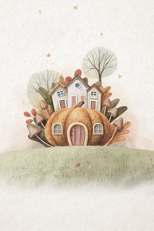 Pumpkin House Black Ornate Wood Framed Art Print with Double Matting by Thai, Xuan