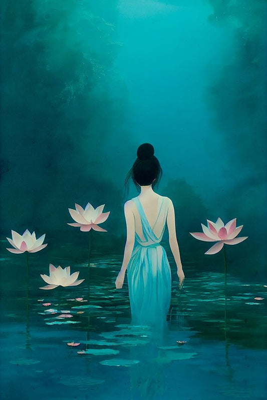 In The Pond Black Ornate Wood Framed Art Print with Double Matting by Treechild