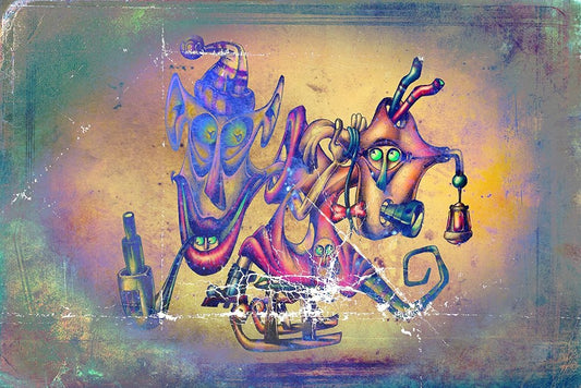 The Snake And The Clovn Black Ornate Wood Framed Art Print with Double Matting by Westum, Heidi