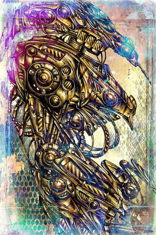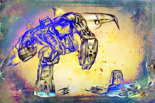 Robots at fighting Black Ornate Wood Framed Art Print with Double Matting by Kulik, Rafal
