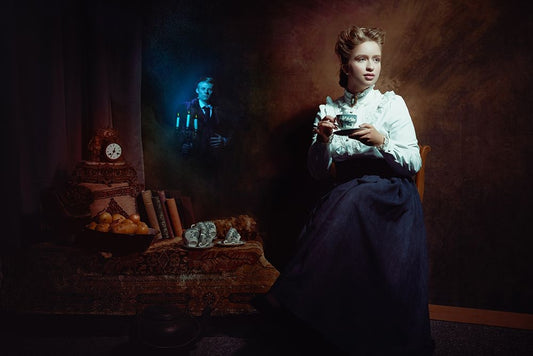 The Haunted Man Is Visiting Her. Black Ornate Wood Framed Art Print with Double Matting by Mighorst, Ineke