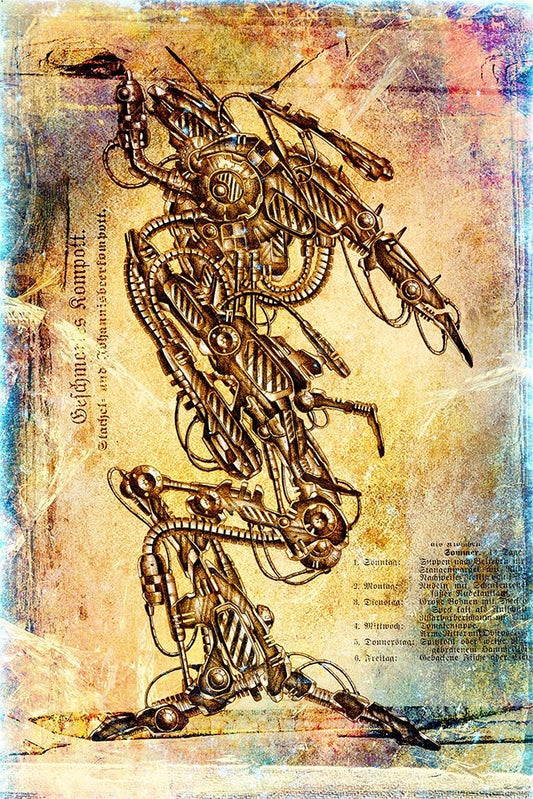 Tup tac machinery art Black Ornate Wood Framed Art Print with Double Matting by Kulik, Rafal