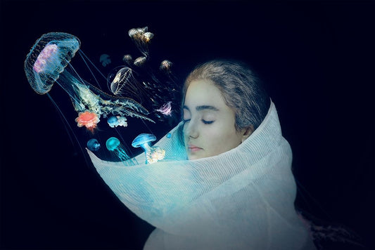 Jellyfish - The Queen Of The Sea Black Ornate Wood Framed Art Print with Double Matting by Bagheri, Parsa