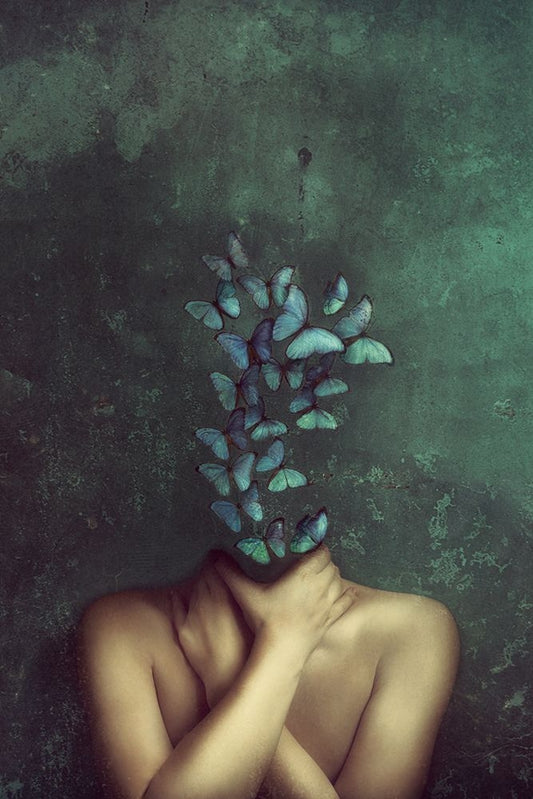 In My Head Butterflies Black Ornate Wood Framed Art Print with Double Matting by Bivolarska, Sima