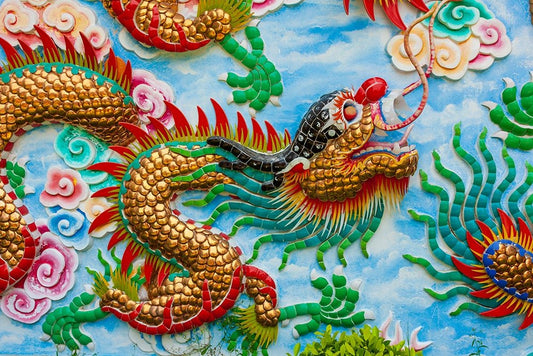 Bangkok- Thailand. Colorful relief depicting dragon or sea serpent. Black Ornate Wood Framed Art Print with Double Matting by Haseltine, Tom