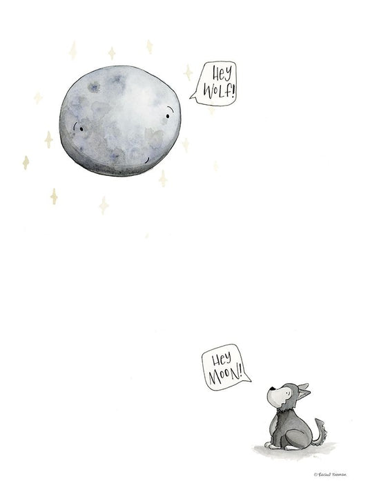 Wolf and the Moon Black Ornate Wood Framed Art Print with Double Matting by Nieman, Rachel