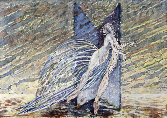 Sea Nymph Seated on a Rock with a Ribbon Seaweed Black Ornate Wood Framed Art Print with Double Matting by Glendening, Alfred Augustus