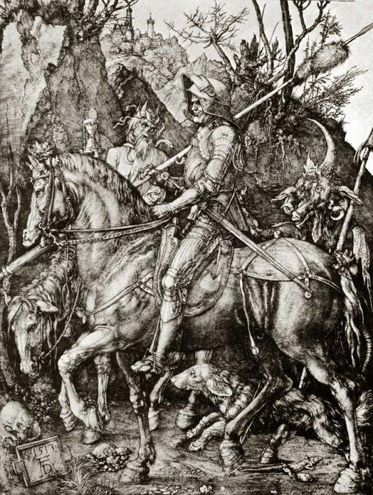Knight Death And The Devil Black Ornate Wood Framed Art Print with Double Matting by Durer, Albrecht