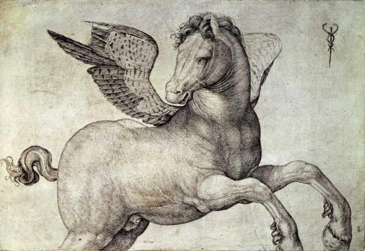 Pegasus Black Ornate Wood Framed Art Print with Double Matting by De Barbari, Jacopo