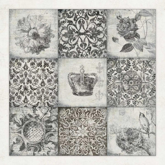 Black and White Nine Patch Black Ornate Wood Framed Art Print with Double Matting by Marrott, Stephanie