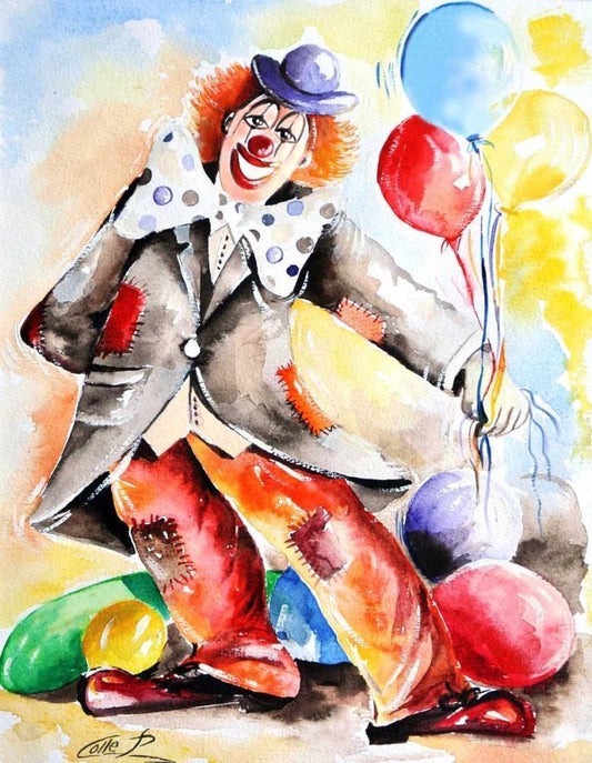 Clown I Black Ornate Wood Framed Art Print with Double Matting by Colle, Pasquale