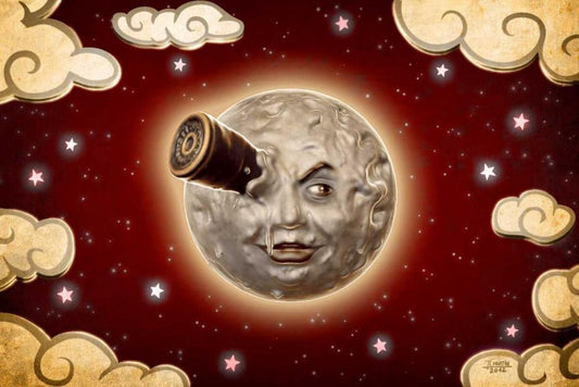 A Trip to the Moon-Red Black Ornate Wood Framed Art Print with Double Matting by Martin, Jose Luis