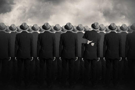 Get in Line Black Ornate Wood Framed Art Print with Double Matting by Ingberg, Tommy