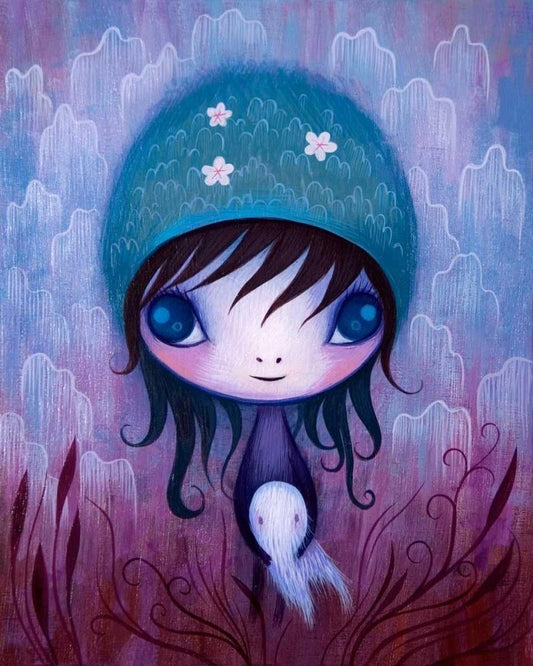 Flower Girl Black Ornate Wood Framed Art Print with Double Matting by Incado