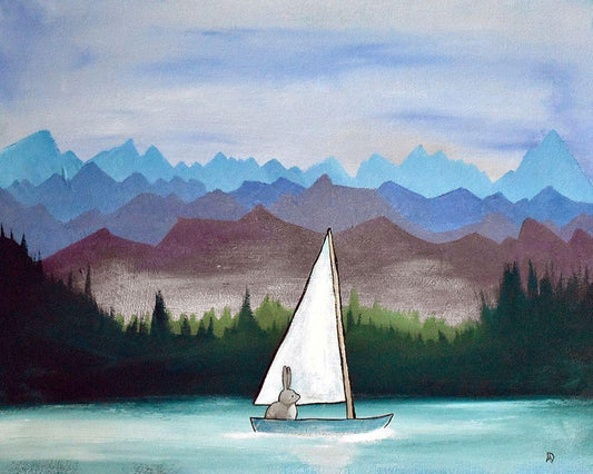Bunny Boat Black Ornate Wood Framed Art Print with Double Matting by Doss, Andrea