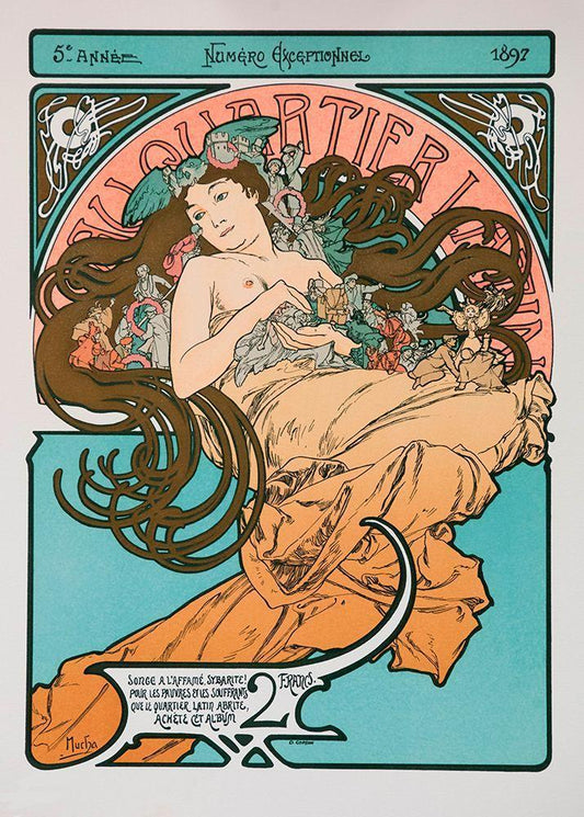 Mucha Quartier Latin Black Ornate Wood Framed Art Print with Double Matting by Vintage Apple Collection