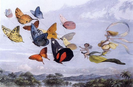 Fairy Butterflies 1 Black Ornate Wood Framed Art Print with Double Matting by Vintage Apple Collection