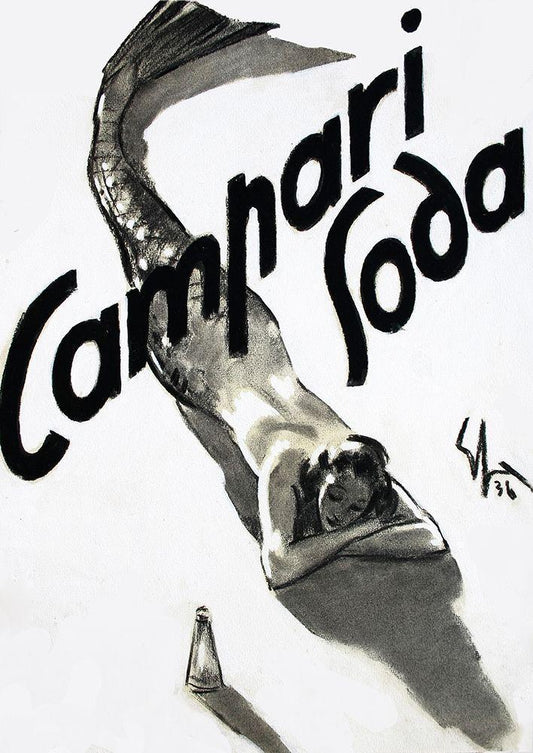 Mermaid Campari 1936 Black Ornate Wood Framed Art Print with Double Matting by Vintage Apple Collection