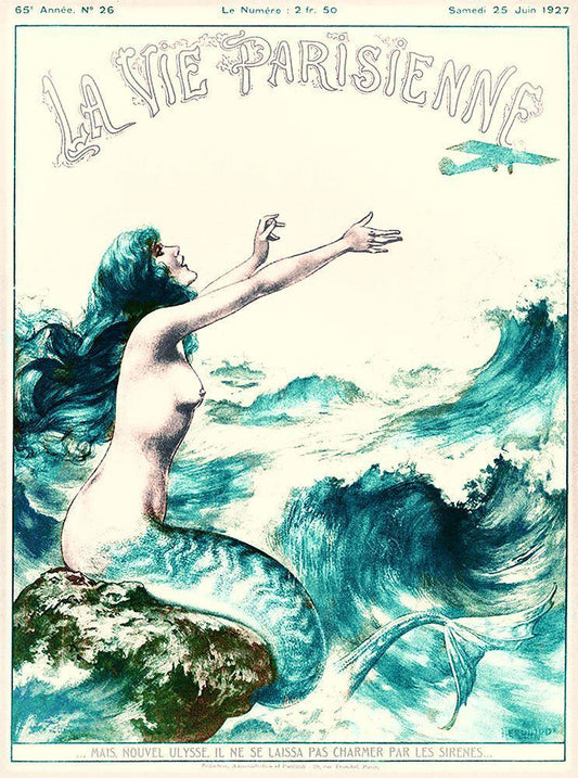 Vintage Mermaid Black Ornate Wood Framed Art Print with Double Matting by Vintage Apple Collection