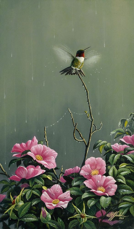 Ruby Throated Hummingbird Black Ornate Wood Framed Art Print with Double Matting by Goebel, Wilhelm