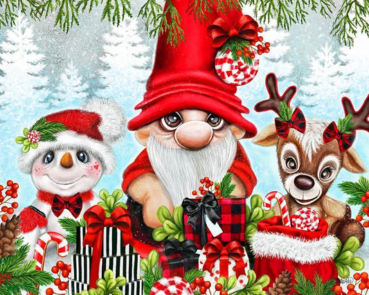 Christmas Gnome and Friends Black Ornate Wood Framed Art Print with Double Matting by Sheena Pike Art