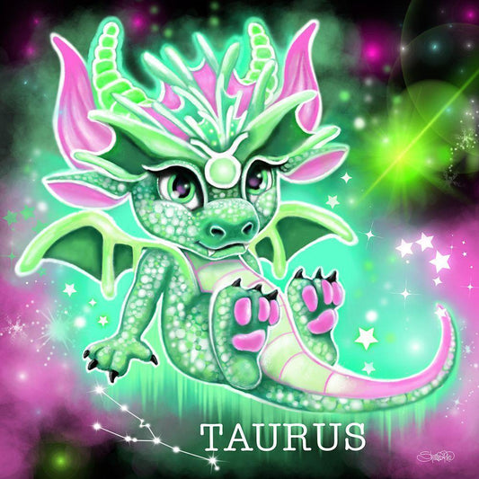 Zodiac Lil Dragonz Taurus Black Ornate Wood Framed Art Print with Double Matting by Sheena Pike Art