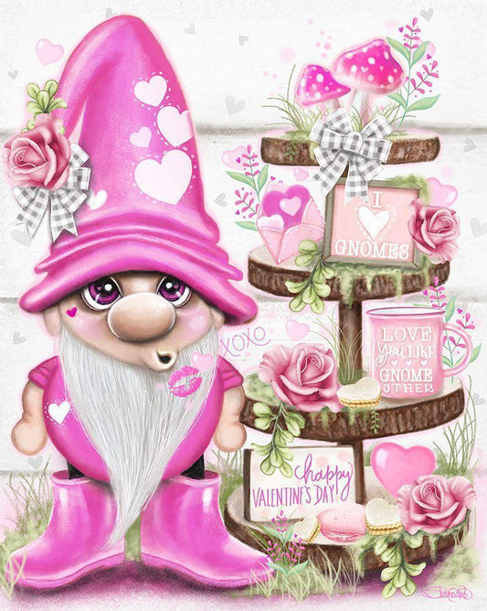 Lil Gnomez Pink Valentine Black Ornate Wood Framed Art Print with Double Matting by Sheena Pike Art