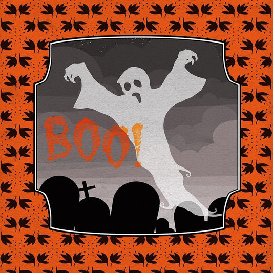 Boo Ghost Black Ornate Wood Framed Art Print with Double Matting by Lavoie, Tina