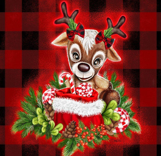 Christmas Cutie Reindeer Black Ornate Wood Framed Art Print with Double Matting by Sheena Pike Art