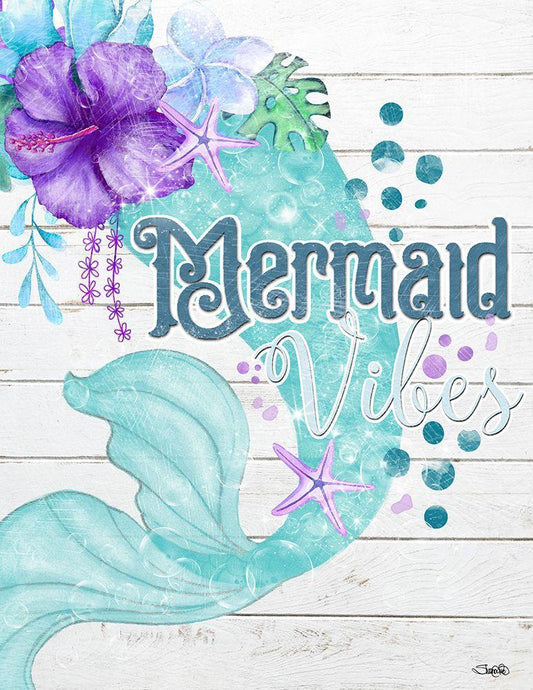 Mermaid Vibes Black Ornate Wood Framed Art Print with Double Matting by Sheena Pike Art