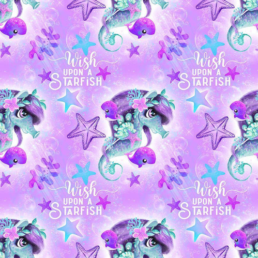 Wish Upon A Starfish Pattern Black Ornate Wood Framed Art Print with Double Matting by Sheena Pike Art