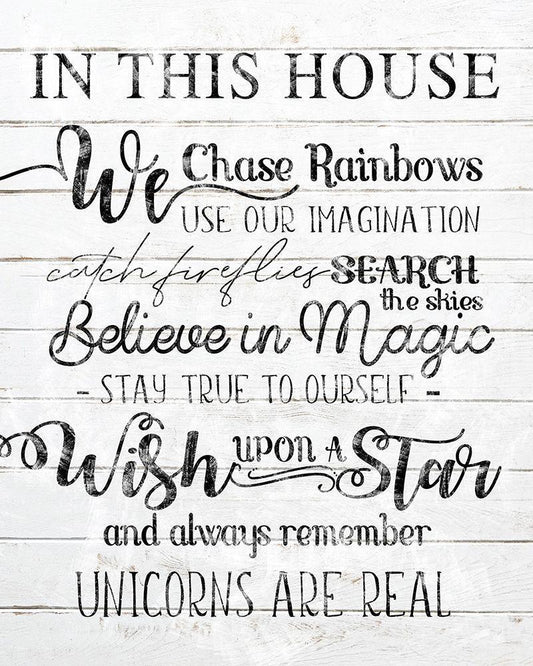 In This House Unicorns Are Real Black Ornate Wood Framed Art Print with Double Matting by Sheena Pike Art