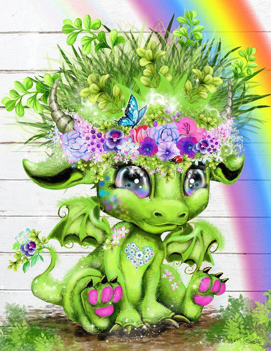 Rainbowcorn - Lil DragonZ Black Ornate Wood Framed Art Print with Double Matting by Sheena Pike Art