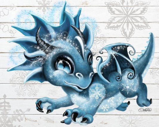 Winter Lil DragonZ Black Ornate Wood Framed Art Print with Double Matting by Sheena Pike Art