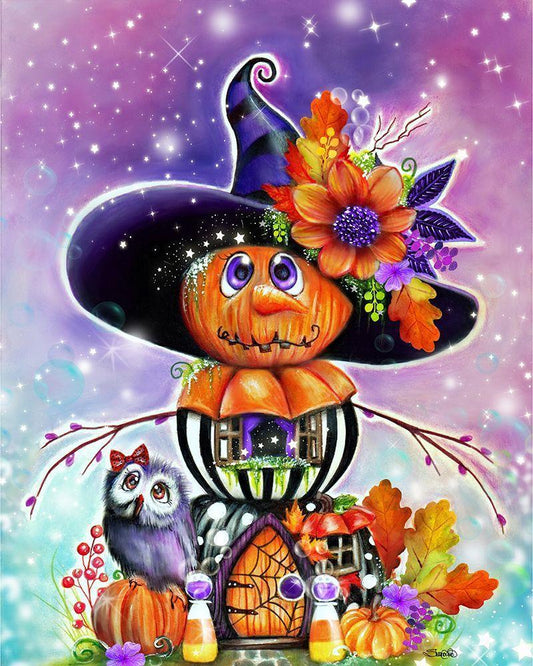 Jack O Man Halloween House Black Ornate Wood Framed Art Print with Double Matting by Sheena Pike Art