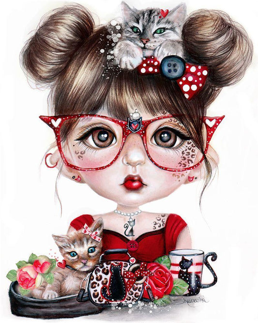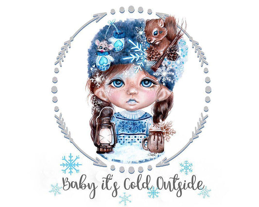Snowy Saraphina MunchkinZ Elf - Baby its Cold Outside Design Black Ornate Wood Framed Art Print with Double Matting by Sheena Pike Art
