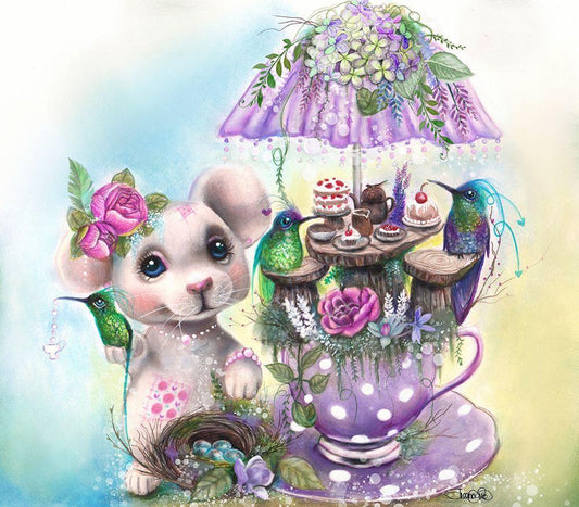 Wont You Join Us- Tea Collection Black Ornate Wood Framed Art Print with Double Matting by Sheena Pike Art