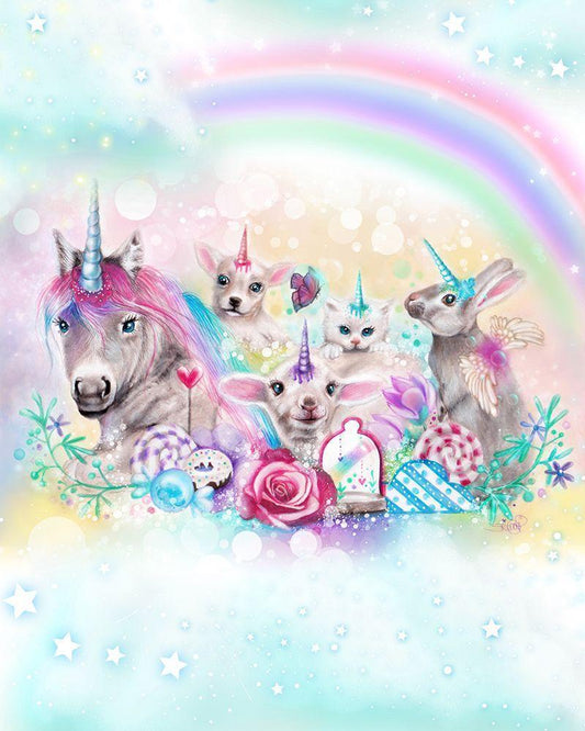 Rainbow CutieCorn Pattern Black Ornate Wood Framed Art Print with Double Matting by Sheena Pike Art