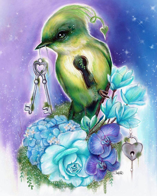 You Hold the Key Love Birds Collection Black Ornate Wood Framed Art Print with Double Matting by Sheena Pike Art