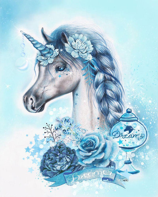 Dreamer Unicorn Black Ornate Wood Framed Art Print with Double Matting by Sheena Pike Art
