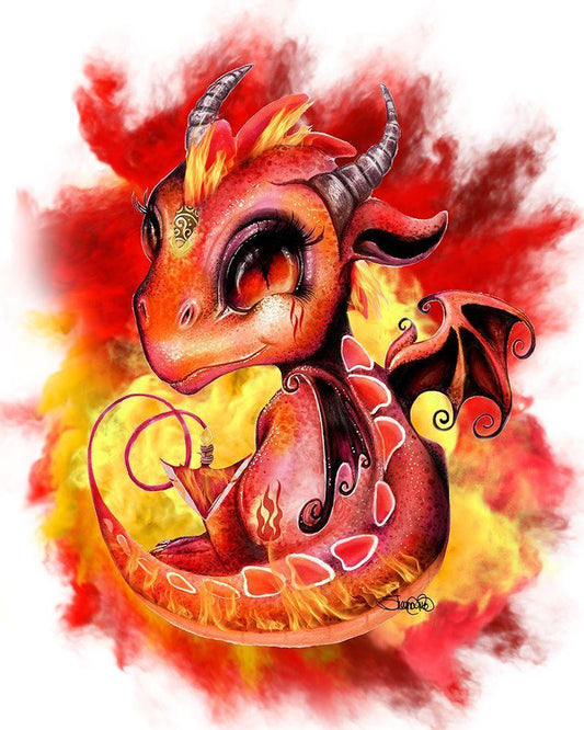 Lil DragonZ Element Series Fire Black Ornate Wood Framed Art Print with Double Matting by Sheena Pike Art