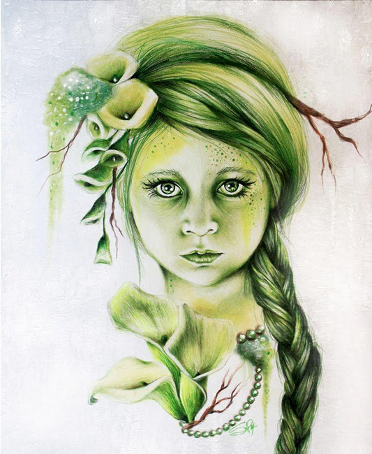 Cala - Pixie Blossoms Black Ornate Wood Framed Art Print with Double Matting by Sheena Pike Art